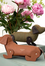 Pickles Sausage Dog Pencil Case in Tan Grain Leather